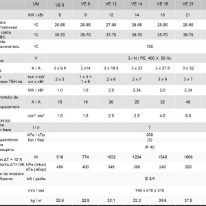 Caracteristici: - două rezistențe electrice de 3 kW fiecare - ventil de aerisire - schimbător de căldură - senzor de presiune - racord pentru manometru - supapă de siguranța - legarea la pământ a carcasei și a returului - pompă - aerisitor automat - contactor - senzor de temperatură ntc - limitator termic de siguranță - vas de expansiune de 7 litri - panou de comandă Interfața panoului de comandă conține: - led BAR ce semnalizează faptul că pe display este afișată presiunea în instalația de încălzire - led regim încălzire ce semnalizează starea regimului de încălzire fie el activ, fie dispune de o defecțiune - led KW ce semnalizează afișarea puterii sau faptul că se poate seta puterea - led apă caldă ce afișează temperatura apei calde menajere dacă centrala este conectată la un boiler - led încălzire ce semnalizează faptul că pe display este afișată temperatura de încălzire pe tur sau faptul că temperatura poate fi setată - tasta OK pentru confirmare - comutator rotativ pentru afișarea sau setarea parametrilor - tasta MODE folosită pentru selecția setării unui paramateru, ca de exemplu setarea temperaturii de încălzire pe tur, setarea puterii, setarea curbei de încălzire, a decalajului curbei de încălzire etc.