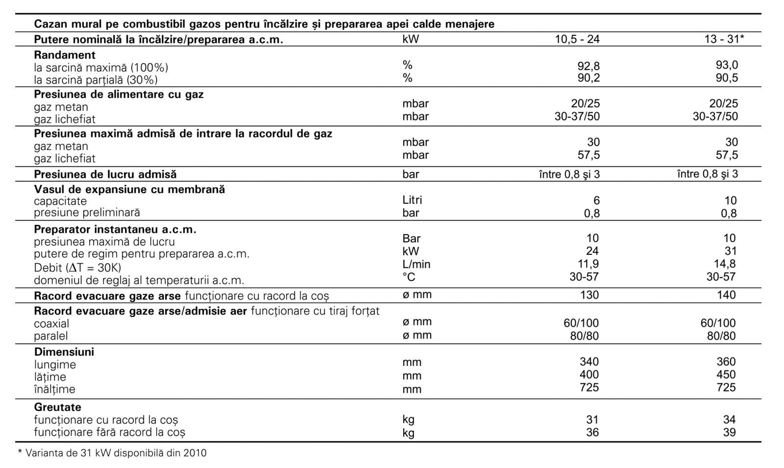 Sunteţi în căutarea unei microcentrale moderne, la un raport preţ / performanţă deosebit de atractiv şi în acelaşi timp nu sunteţi dispus să faceţi nici un rabat la calitatea produsului? Prin Vitopend 100 aveți soluţia potrivită. Din varietatea de tipuri constructive şi puteri disponibile puteţi alege modelul potrivit pentru orice aplicaţie. Longeviv şi de încredere - Made in Germany În calitate de fabricanţi experimentaţi de microcentrale putem afirma că ştim toate aspectele legate de aceste produse. Chiar şi în cazul unui aparat atractiv ca Vitopend 100 pretenţiile noastre de calitate şi performanţă se aplică cu consecvenţă. Datorită acestei atitudini, cazanele murale Viessmann s-au impus atât prin inovativitate şi performanţe, cât şi prin fiabilitate. Unul dintre cele mai mici şi silențioase produse din acest segment Datorită dimensiunilor compacte şi a nivelului de zgomot funcţional moderat poate fi integrat uşor în spaţiul locuinţei. Economic şi prietenos cu mediul înconjurător Clasificat în grupa cazanelor de joasă temperatură conform normei europene privind eficienţa energetică CE 92/42.