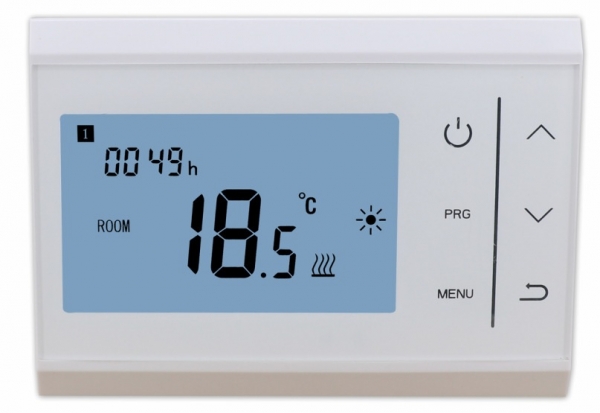 Termostat de camera aplicabil pe perete a fost dezvoltat pentru a fi capabil sa porneasca si sa opreasca sisteme de incalzire conventionale si electrice prin intermediul temperaturii si timpului setate. Functii: - ecran mare poate fi citit clar cu ajutorul luminii de fundal; - termostat si senzor de temperatura cu montaj usor; - se poate utiliza usor cu ajutorul celor sase butoane; - se pot programa 4 perioade ale fiecarei zi (5+1+1); - ecranul afiseaza temperatura setata precum si temperatura masurata in incapere, dar si timpul; - temperatura este exprimata in grade Celsius