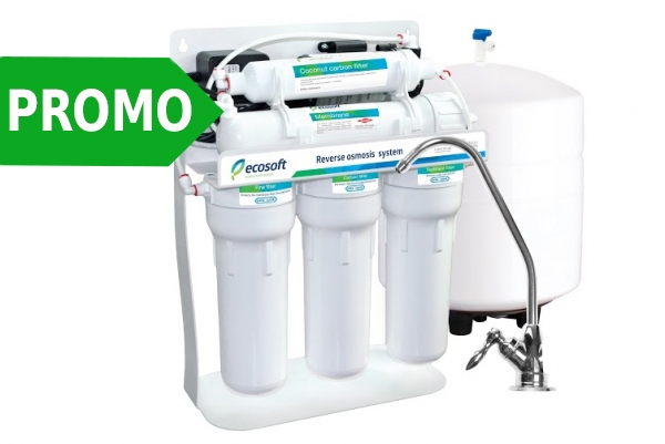 Sistemul de filtrare prin osmoza inversa “Ecosoft” are 5 trepte de filtrare care retin contaminatii din apa, inclusiv virusurile si bacteriile. Primele trei etape de filtrare asigura o precuratare a apei. Aceste trei cartuse (doua de polipropilena si unul de carbon active) sunt produse de compania americana Clack Corporation. Urmeaza etapa a patra, membrana de osmoza inversa produsa tot de o companie americana, DOW Filmtec. Finetea filtrarii ajunge la 0,0001 microni, prin porii membranei putand trece doar moleculele de apa. Dupa aceasta etapa apa ajunge in tancul de stocare de unde trece prin ultima etapa de filtrare, a cincia, cartusul de carbon postfiltrare unde se corecteaza gustul si mirosul apei. Pentru a creste randamentul sistemului de filtrare, acesta este dotat cu o pompa de presiune.